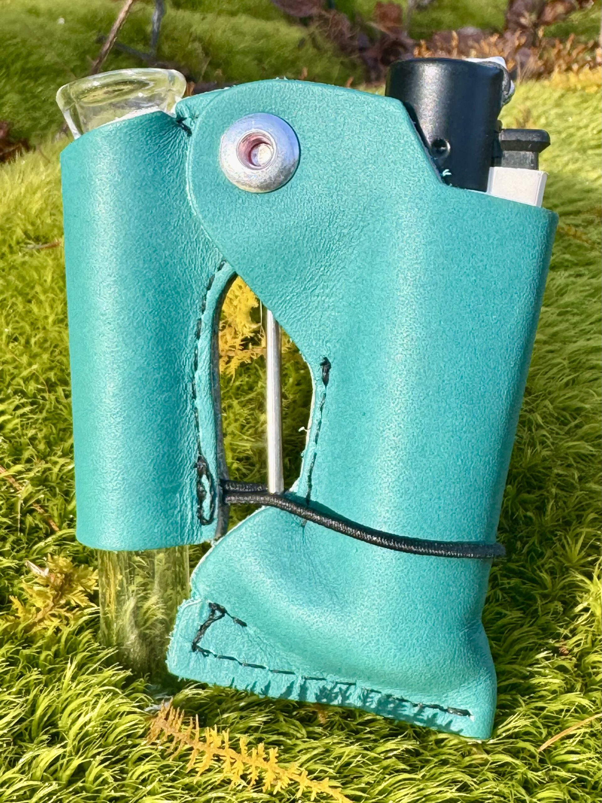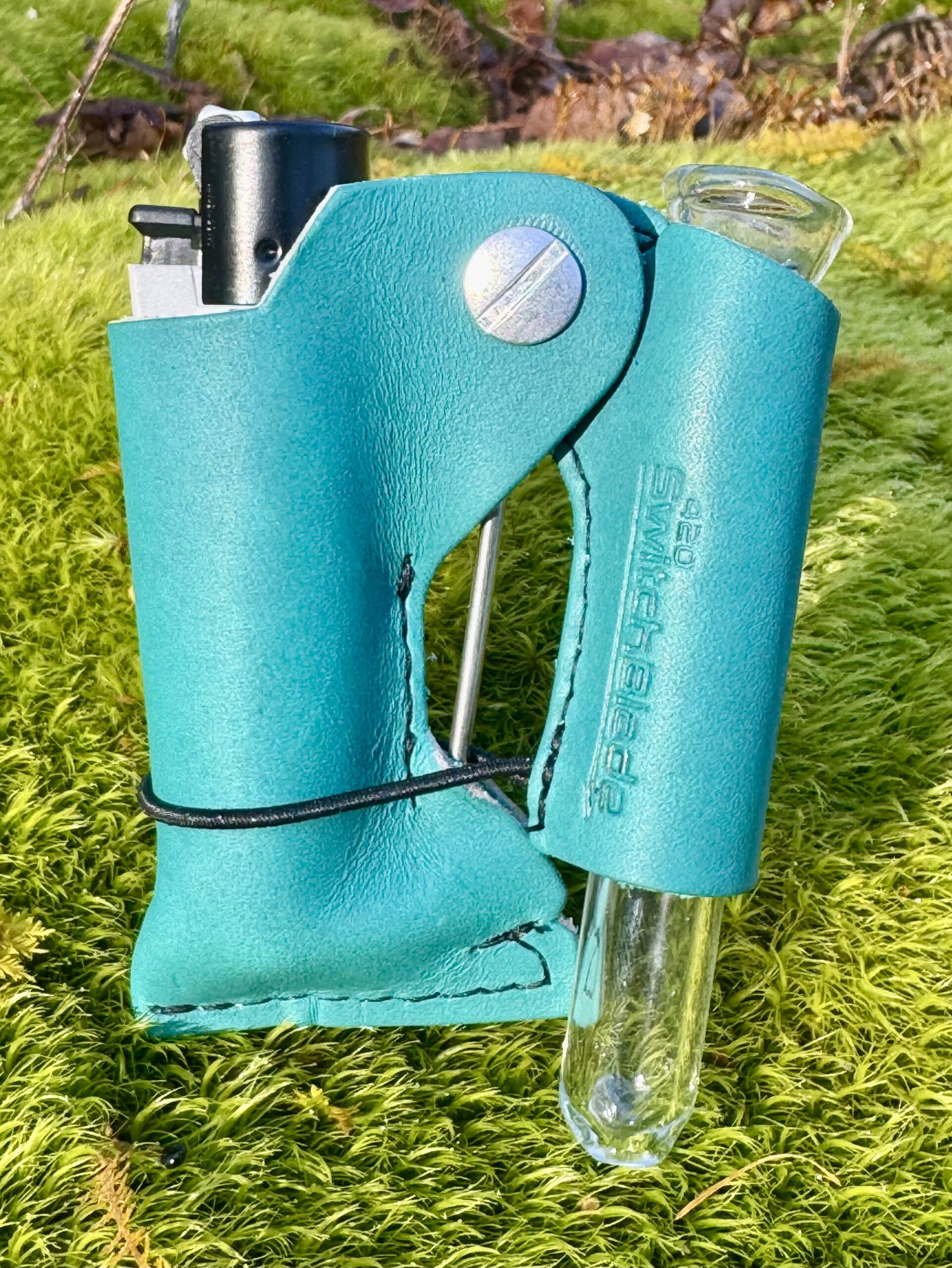 A very interesting and classy look with this limited Turquoise Leather. Nothing outlasts leather and this switchblade will only continue to earn its keep. Stamped with the 420 SwitchBlade logo so you know its craftsmanship is guaranteed. Comes with clipper lighter, stainless poker and a handmade pipe using American glass. ONLY FITS CLIPPER LIGHTERS. We recommend clippers because they are refillable and they work best with our product.